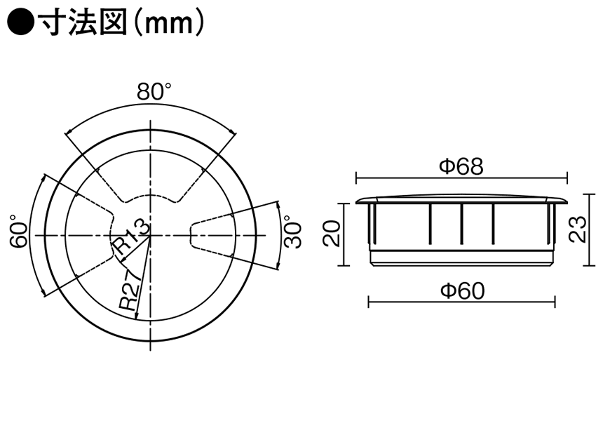 オーダーカット天板にあけた穴に取り付けるキャップです。配線をすっきり通すことができます。