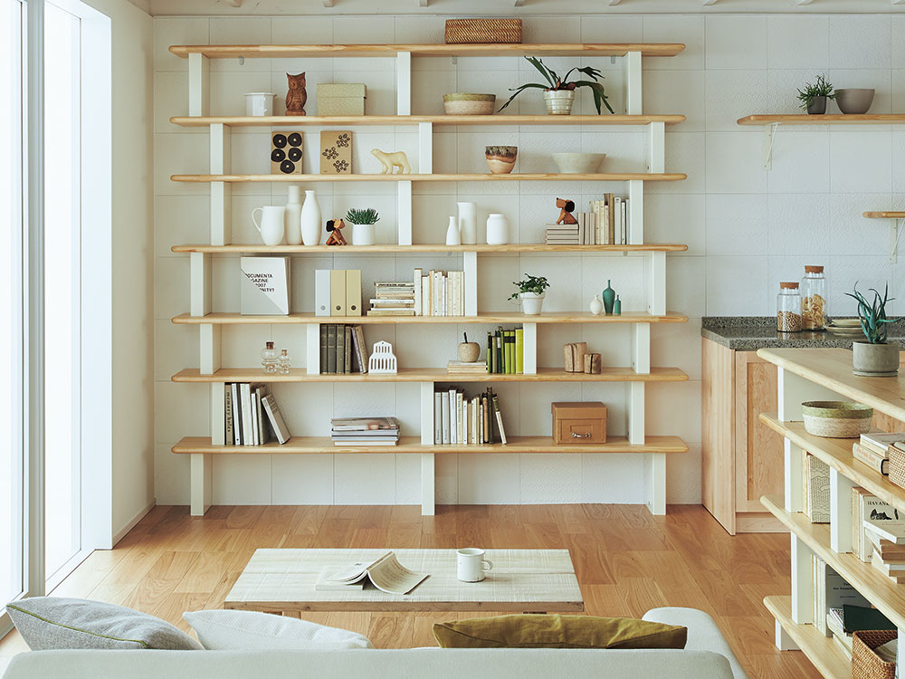 板を組み合わせて自分で組み立てる家具です。おすすめの基本セットをはじめ、あなたにぴったりのサイズを感覚的に簡単にオーダーすることもできます。
