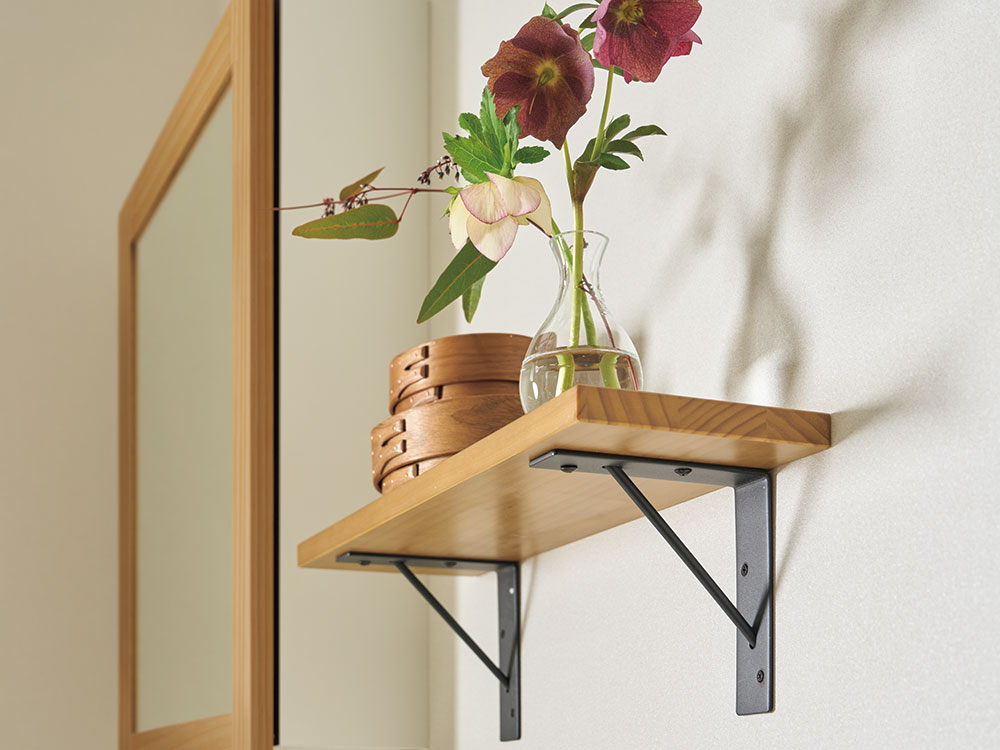 ニュージーパイン一本芯集成材の棚板に、ライト色が新しく登場しました。人気の樹種、オーク材に近い色味で、お部屋のコーディネートの幅が広がります。収納棚として幅広く使える厚さ18mmと、テレビなど重い物を置いても安心な厚さ30mmの2種類をご用意しています。どちらもDIYに使いやすい厚さです。